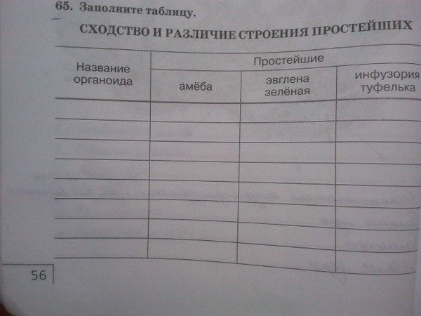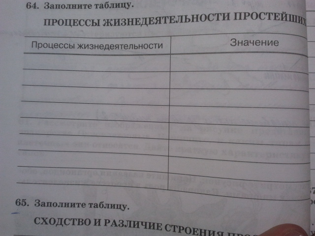 ПОМОГИТЕ ЗАПОЛНИТЬ ТАБЛИЦЫ. (Рабочая тетрадь. БИОЛОГИЯ. 7 класс. (стр.56 №64, 65) )