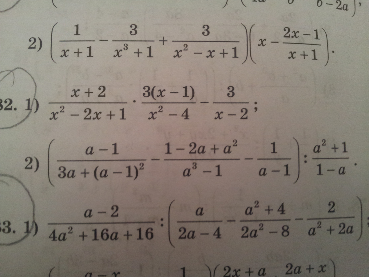 1) x+2/x^2-2x+1 * 3(x-1)/x^2-4 = x+2/(x-1)^2 * 3(x-1)/(x-2)(x+2) = 1/x-1 * 3/x-2 = 3/x-2