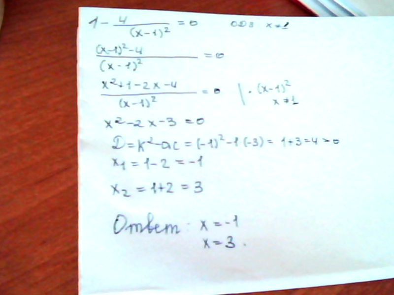 приводим к общему знаменателю,раскрываем скобки,ставим условие на знаменатель,чтобы он не равнялся нулю,и смело отбрасываем его,и решаем простое квадратное уравнение.