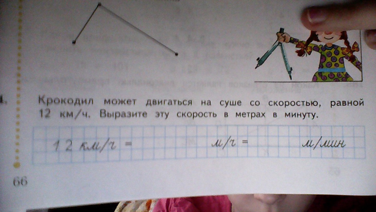 км/ч. Выразите эту скорость в метрах в минуту. 12 км/ч=12*1000/60=200 м/мин