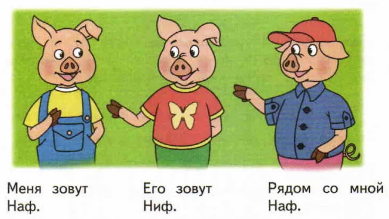 2 поросенок - "Его зовут Ниф" (указывает на 1-го поросенка)