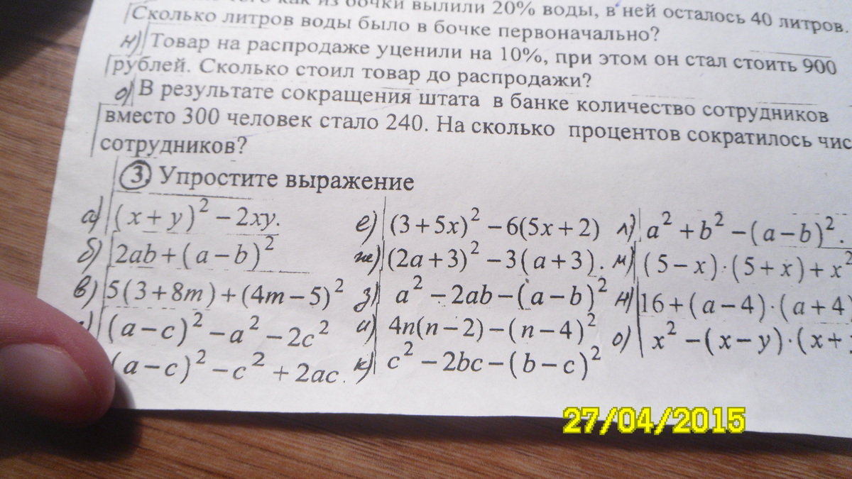 в) 5(3+8m)+(4m-5)^2=15+40m+16m^2-40m+25=16m^2+40=4(4m^2+10)