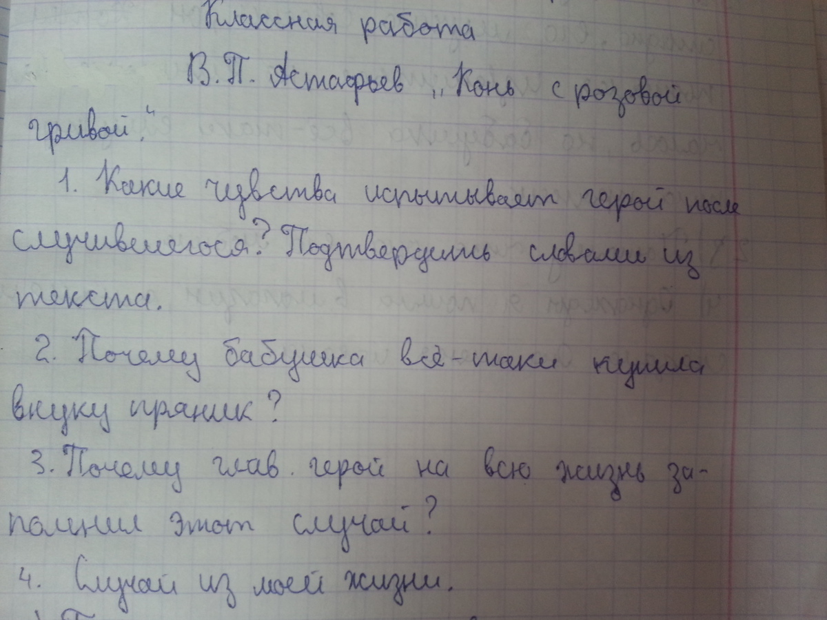 Помогите ответить на вопросы по сказке Астафьева "Конь с розовой гривой"