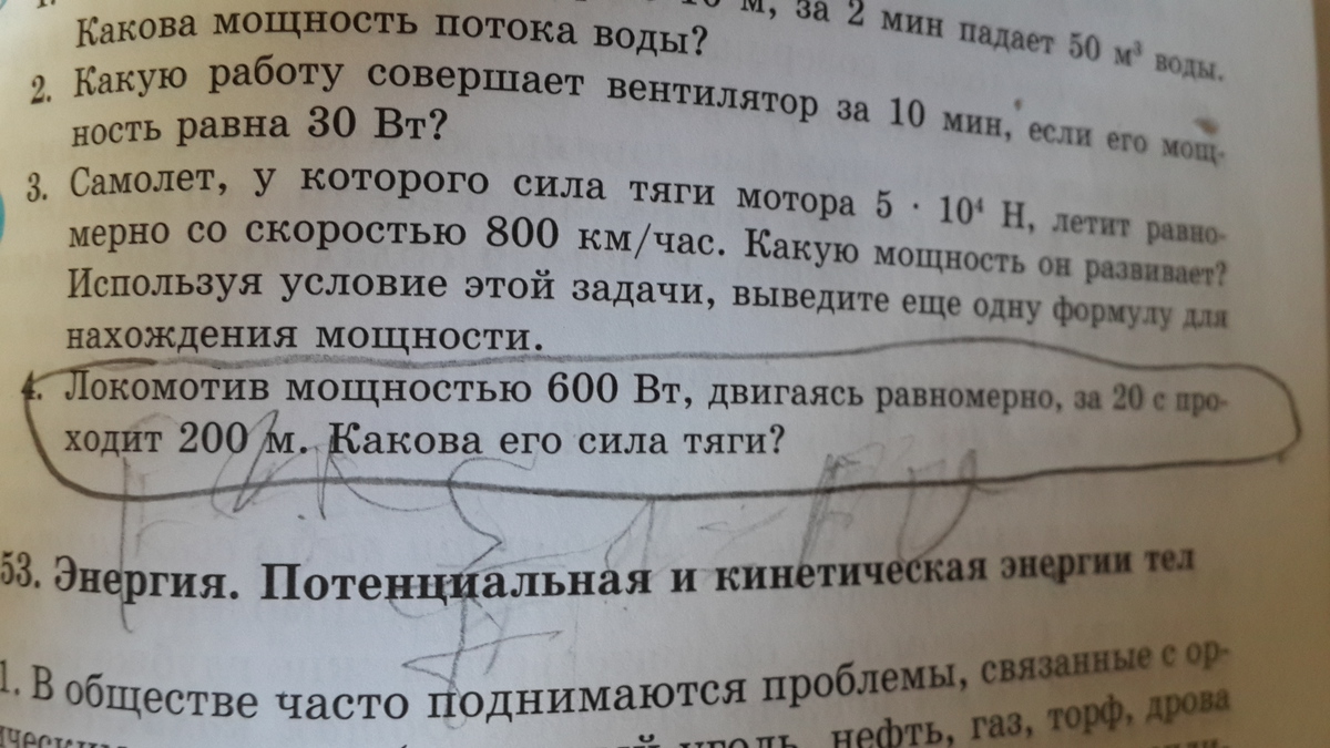 F= ( 600 Вт * 20 с ) / 200 м = 60 Н