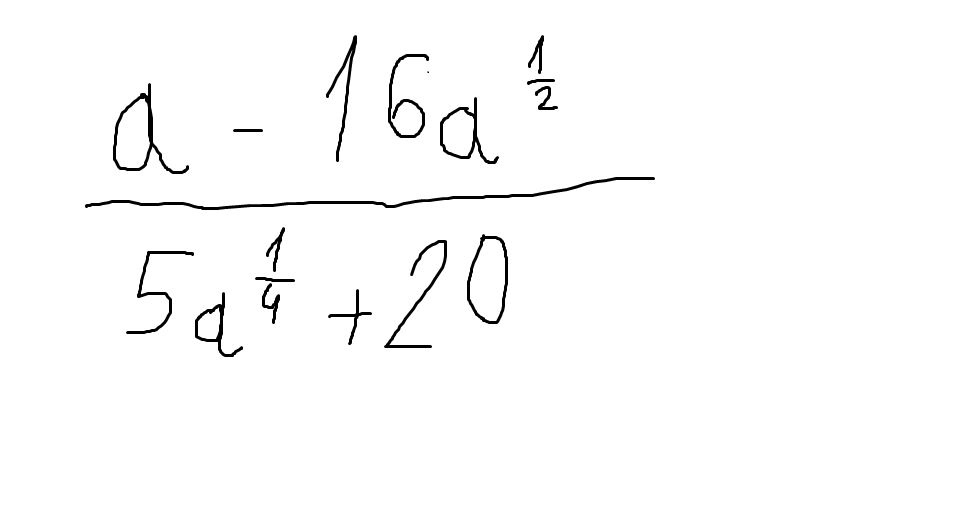 (a^1/2)^2-16a^1/2}/5(a^1/4+4)=a^1/2((a^1/4)^2-4^2)}/5(a^1/4+4)=a^1/2*(a^1/4+4)(a^1/-4)}/5(a^1/4+4)=1/5a^1/2(a^1/4-4)=1/5(a^3/4-4a^1/2)