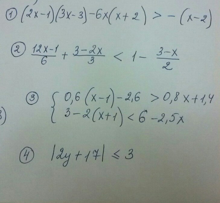 1) (2x-1)(3x-3)-6x(x+2)>-(x-2)
