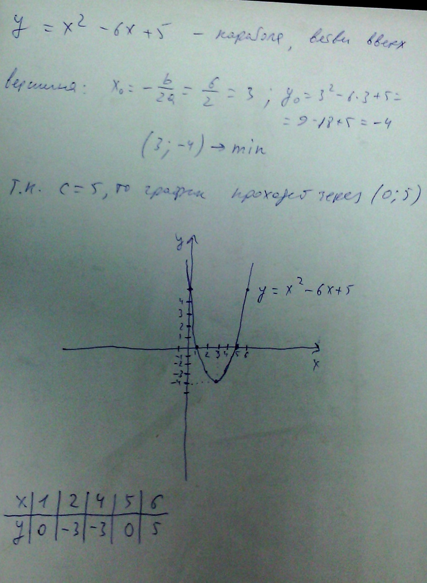 Наименьшее значение в вершине (3; -4), решение на картинке.