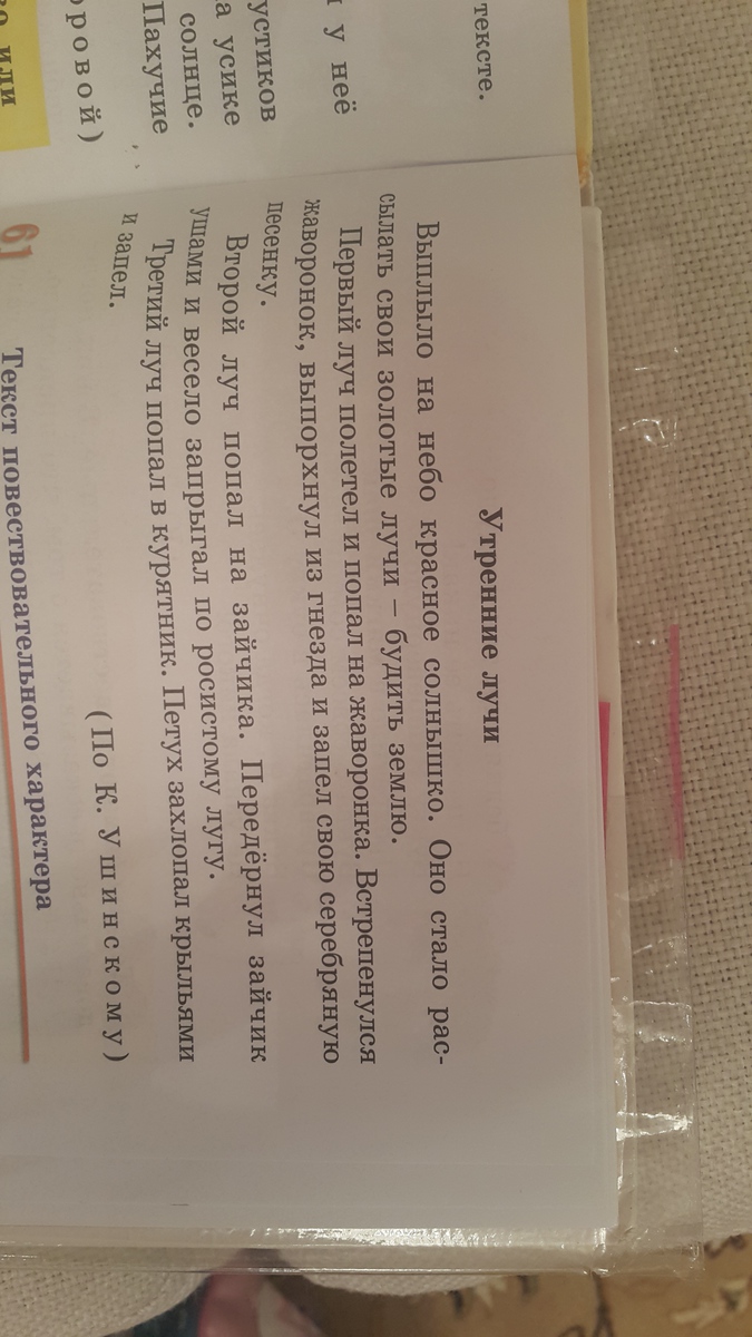 В первом предложении подчеркни главные члены. Составь и запиши план текста.Выплыло на небо красное солнышко.Оно стало рассылать свои золотые лучи-будить землю.Первый луч полетел и попал на жаворонка. Встрепенулся жаворонок, выпорхнул из гнезда и запел свою серебряную песенку.Второй луч попал на зайчика.Передернул зайчик ушами и весело запрыгал по росистому лугу.Третий луч попал в курятник.Петух захлопал крыльями и запел.