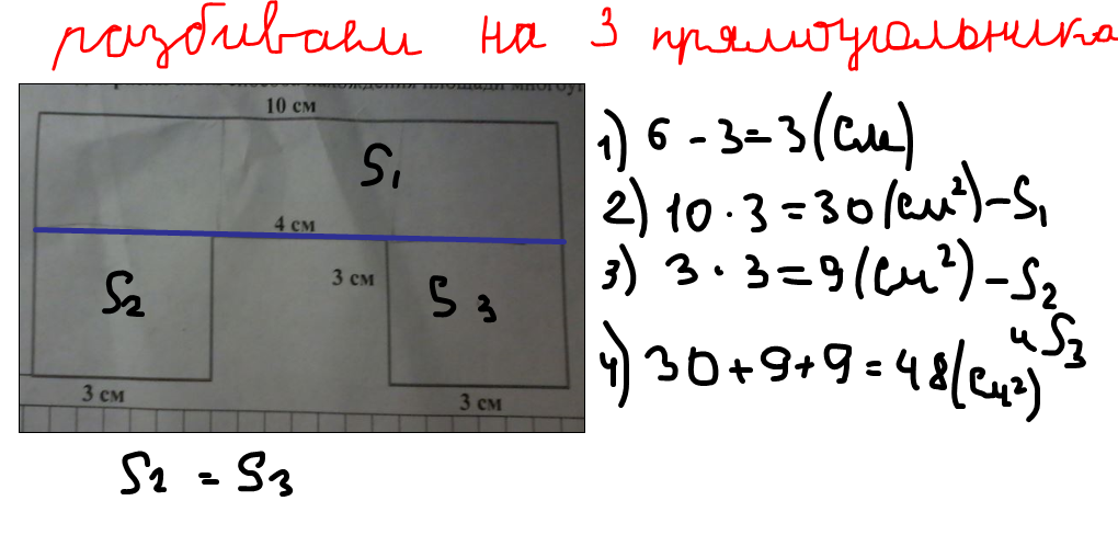 2 способ: разбиваем на 3 прямоуголиника