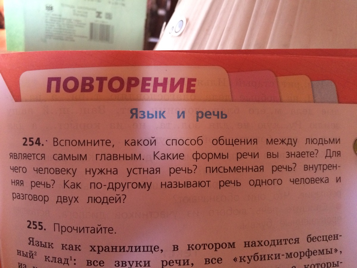 Речь - главный способ общения между людьми. Формы речи: устная и письменная и внутренняя. Устная речь нужна человеку для оперативного обмена информацией (общения) с другими людьми, посредством голоса. Письменная речь нужна для передачи информации на расстояние и сохранения ее на твердом носителе (например, книга). Внутренняя речь - мышление человека, рассуждения. Речь одного человека - монолог, двух - диалог.
