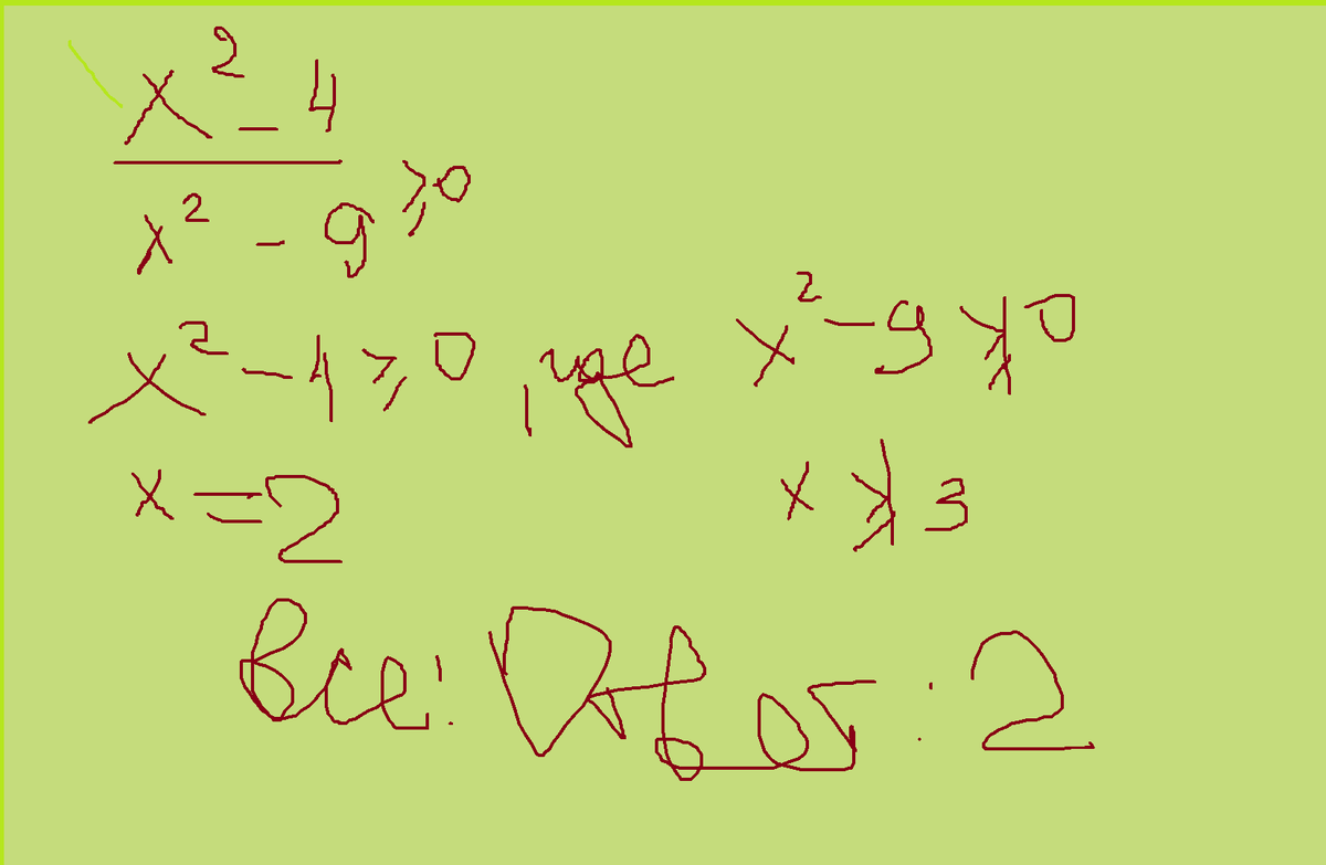 икс в квадрате минус 4 делить на икс в квадрате минус 9 больше или равно 0