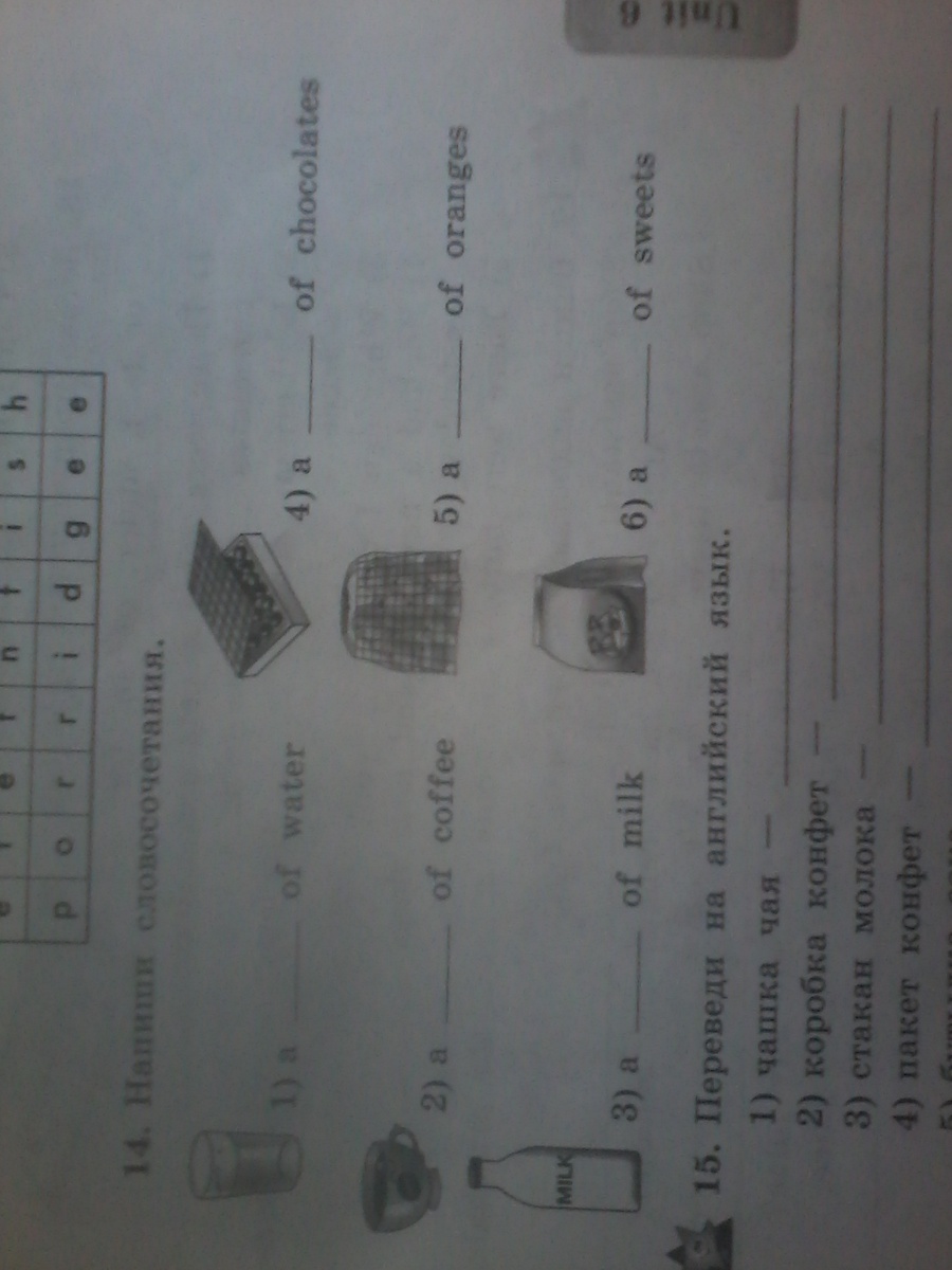 1 glass 2 cup 3 bottle 4 carton 5 packet 6 box