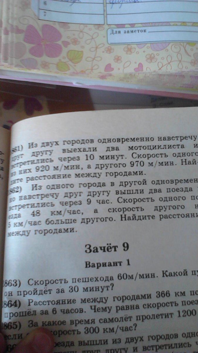из двух городов одновременно навстречу друг другу выехали два мотоциклиста и встретились через 10 мин скорость одного из них 920 м мин а другого 970 м мин
