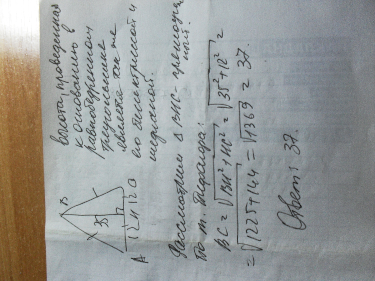 По теореме Пифагора находим боковую сторону . Возьмём её за Х. Х^2=35^2+12^2