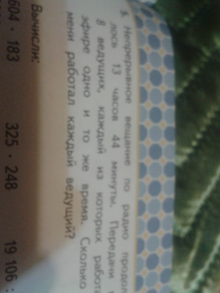 Было 8 ведущих. 824/8=103. Получается что каждый работал 1час и 43 минуты.