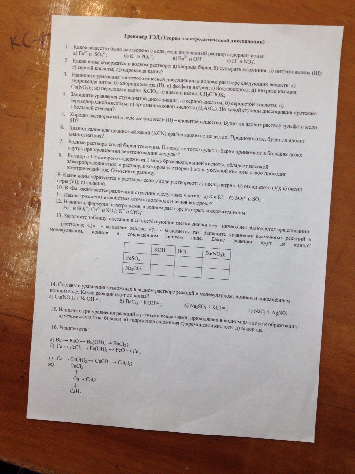 Ж) KClO4 = K(+) + ClO4(-)