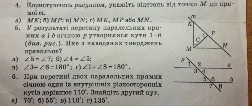 Помогите пожалуйста, очень надо !!!! Завтра последний день!!!!!! Срочно, плиз!!!!!! Я написала перевод , посмотрите рисунки во вложении!!!!! 4) пользуясь рисунком, укажите расстояние от точки М до прямой m.