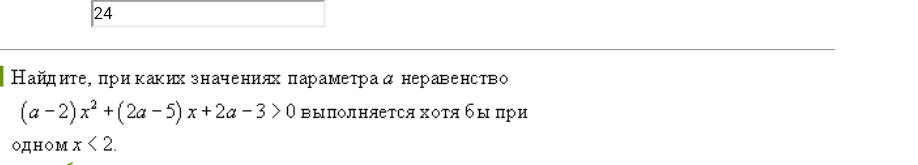 Замечаем, что все решения неравенства меньше 2(так что хотя бы при одном x < 2 неравенство выполняется). Значит, a = 2 нам подходит.