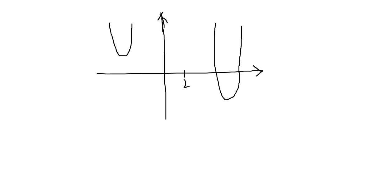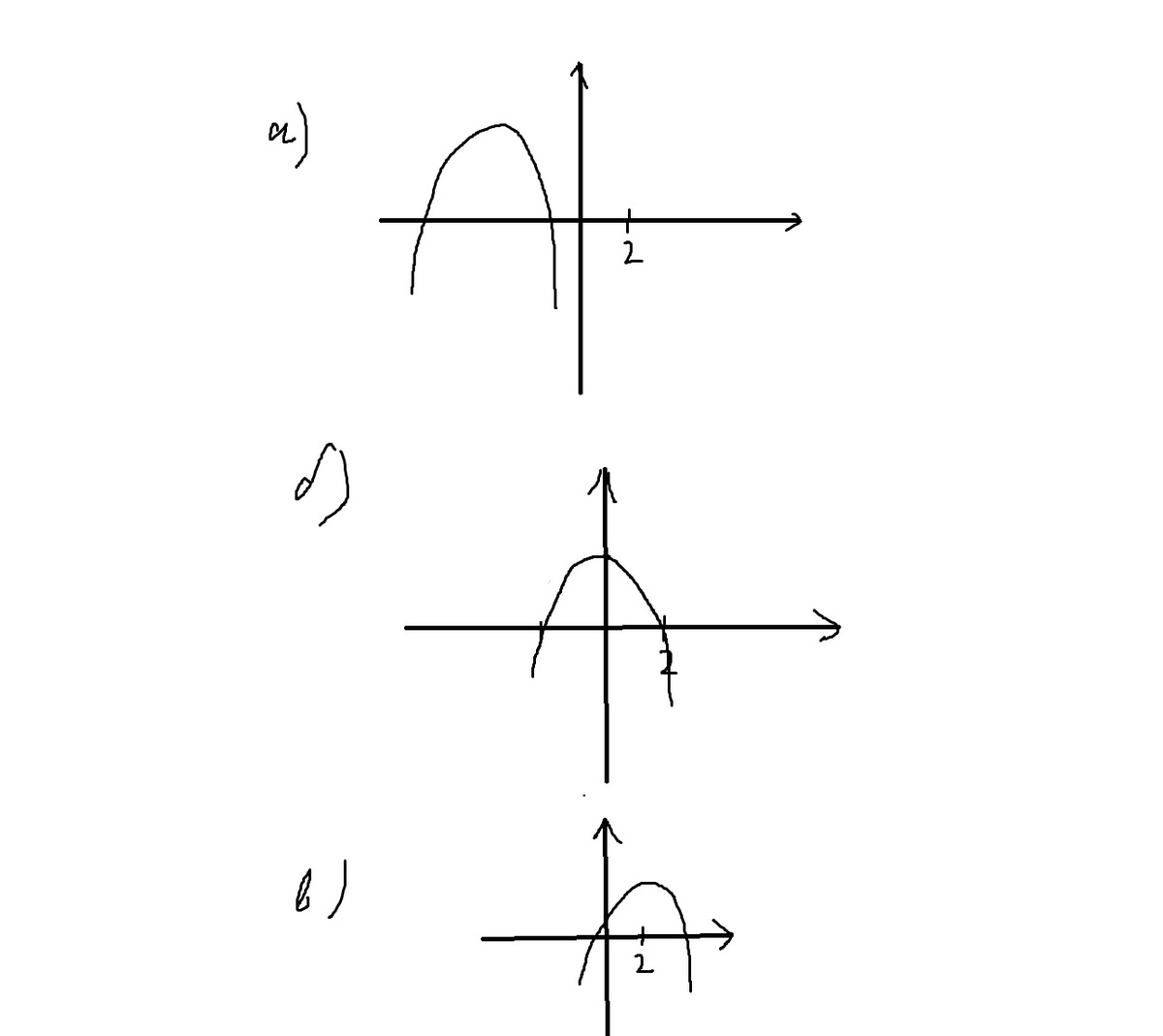 Нарисовано несколько парабол различного вида(пересекающих ось OX, не пересекающих её). У всех парабол ветви направлены вверх. При такой ситуации хотя бы для одного x < 2 выполняется положительность квадратного трёхчлена(действительно, на этом интервале хотя бы в одной точке x < 2 f(x) > 0)