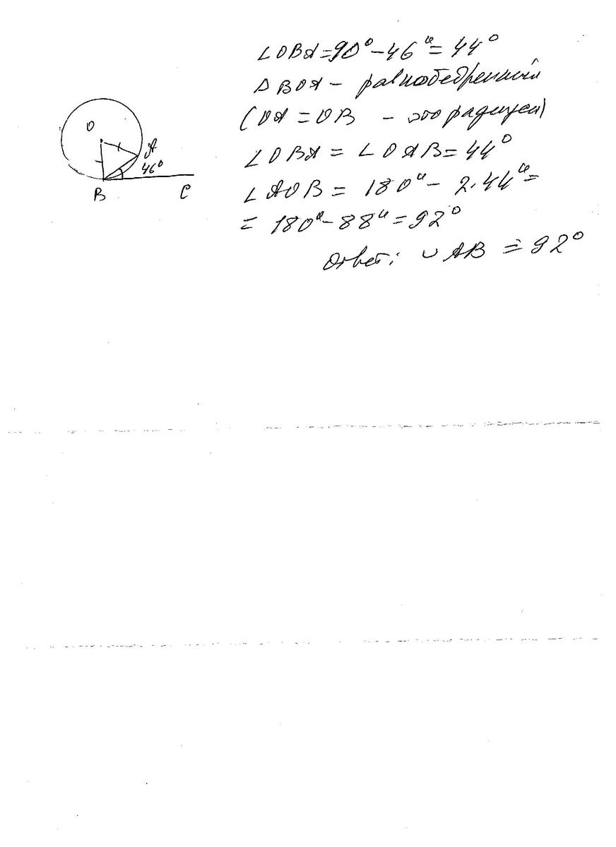 Угол между хордой АВ и касательной ВС к окружности равен 46°. Найдитн величину меньшей дуги, стягиваемой хордой АВ. Ответ дайте в градусах.