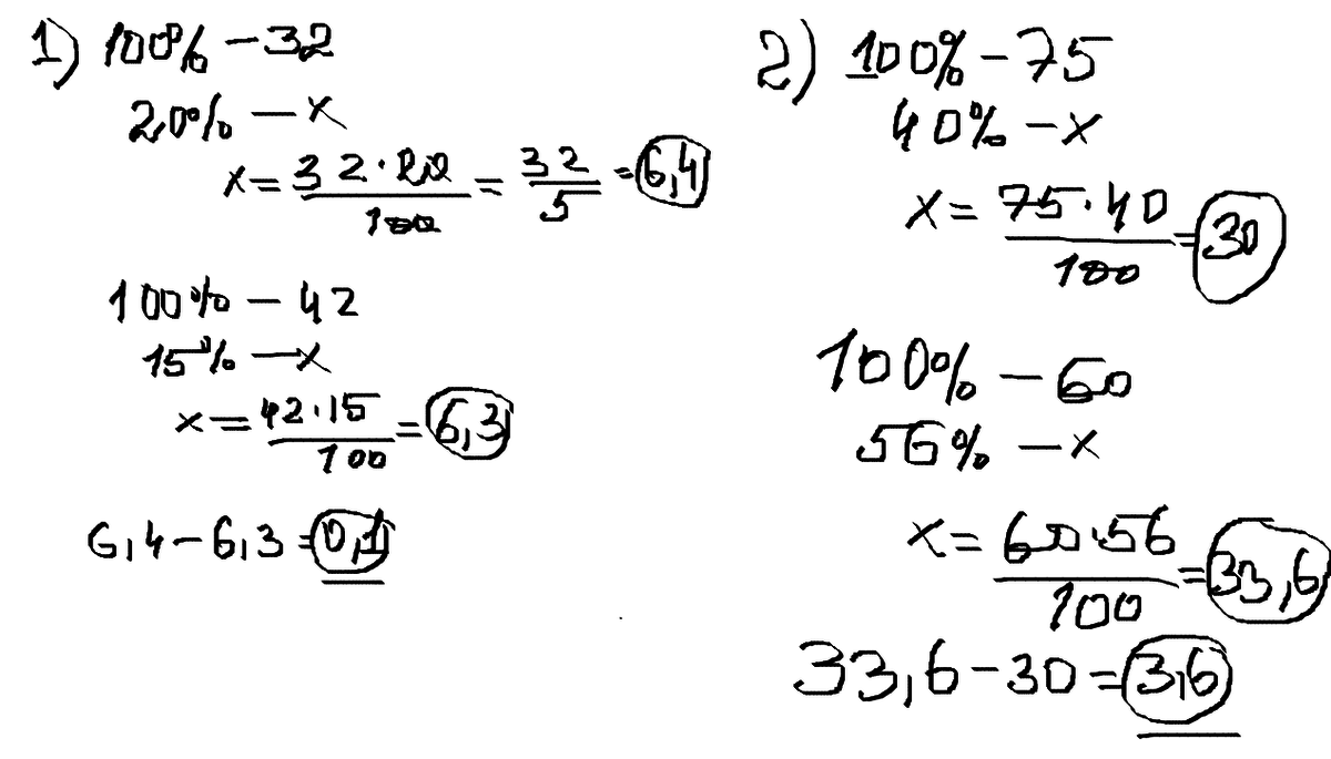 40% от 75 меньше на 3,6,чем 56% от 60.