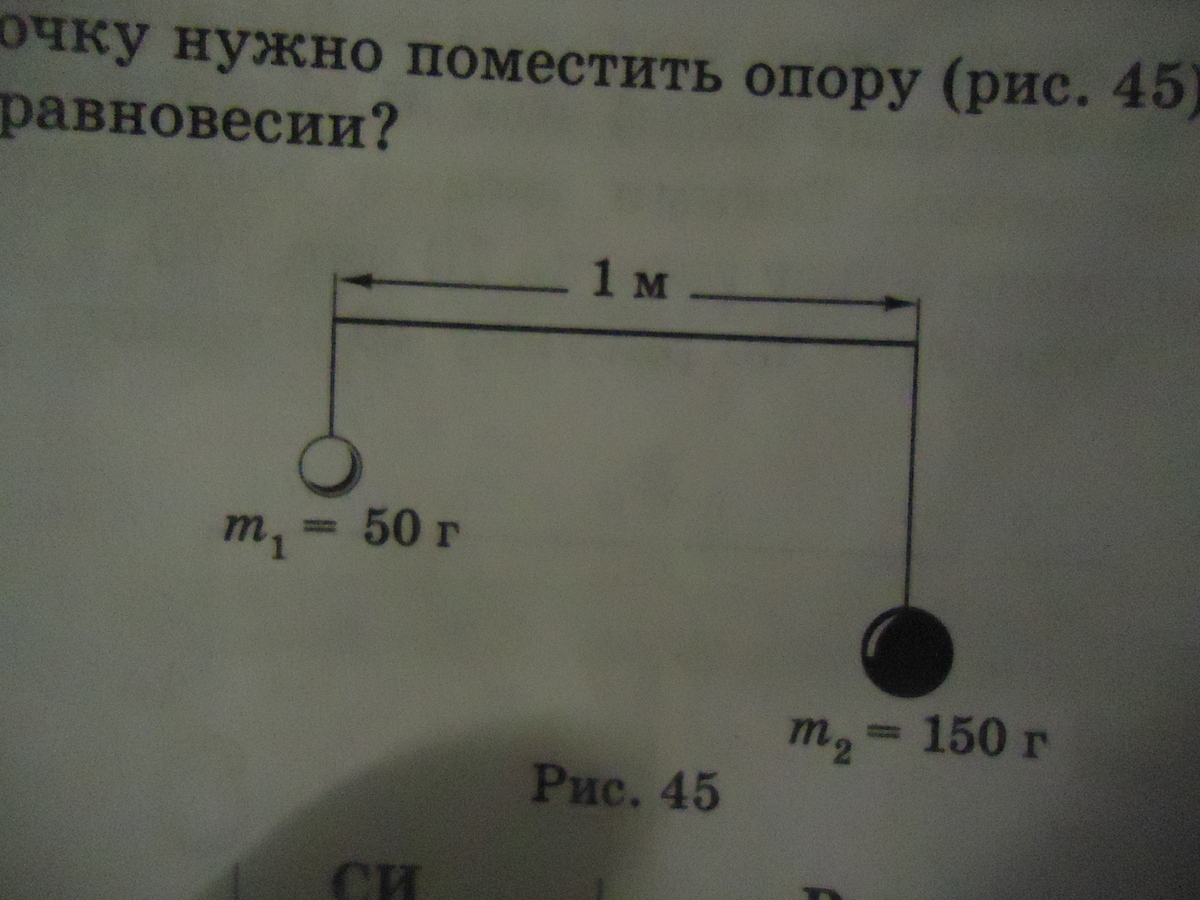 следовательно опору нужно поместить в точку 1/4 длины рычага от груза массой 150 грамм