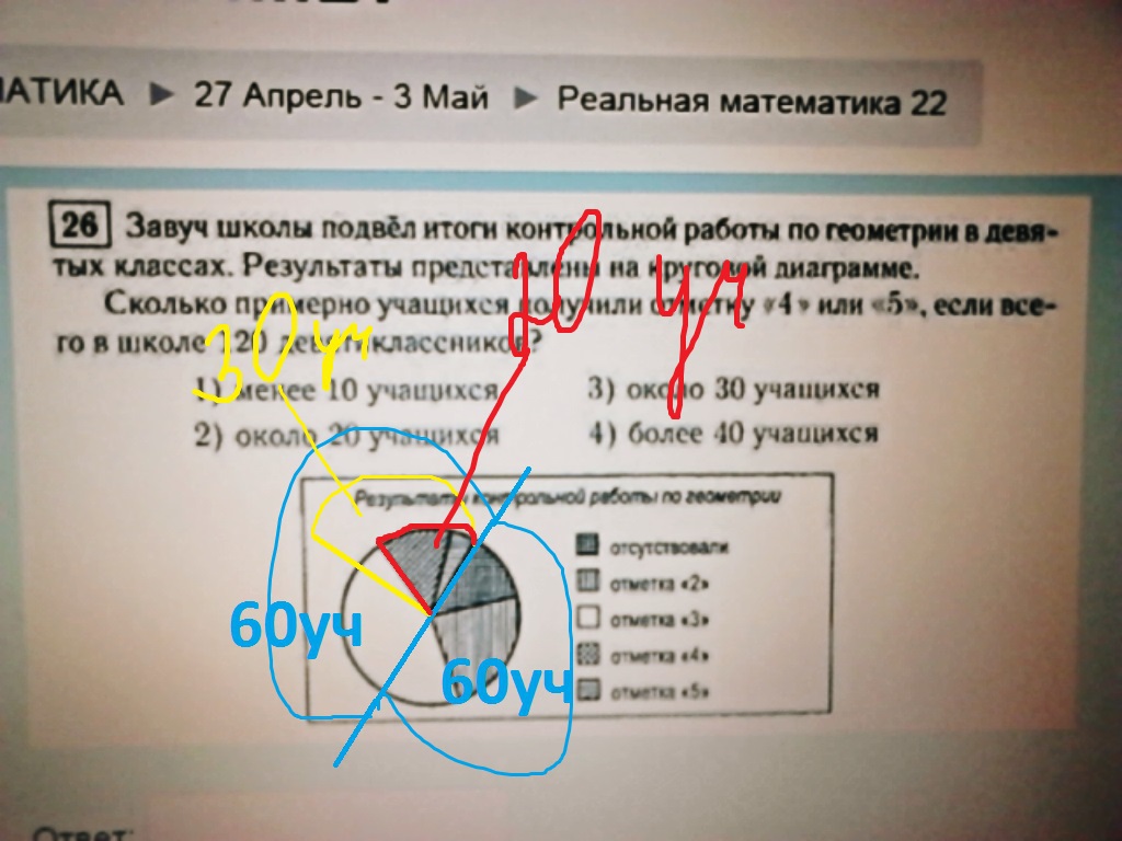 пропускавшие-10 то от 120 остается 10 или20 чтобы найти точно нужно измерить транспортиром