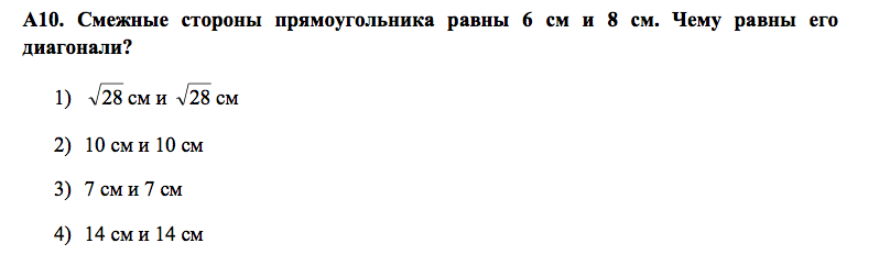 А10: по т.Пифагора: диагонали равны кореньиз(36+64)=10. Ответ: 10 см и 10 см.