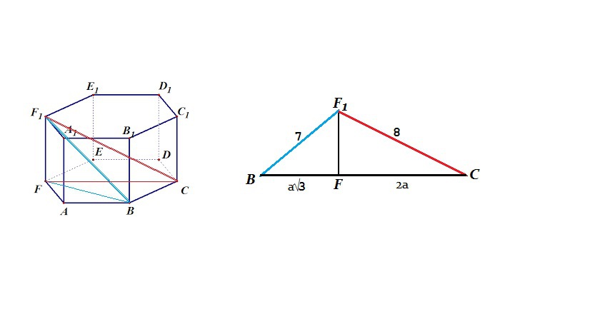 Проекция диагонали F₁B соединяет вершины F и B основания и образует равнобедренный треугольник, в котором половина FB равна а*sin (60°), а вся FB=а√3