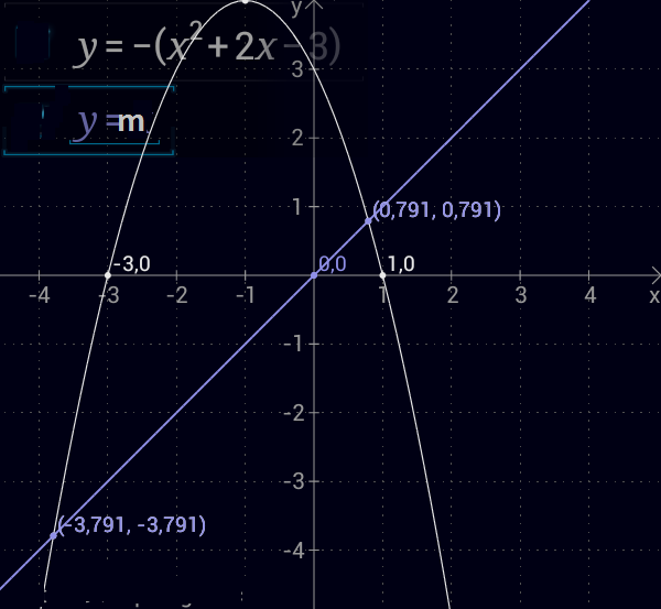 Постройте график функции y=-|x^2+2x-3| и найдите, при каких значениях прямая y=m пересекает построенный график ровно в трех точках. (Помогите, пожалуйста! Умоляю!)