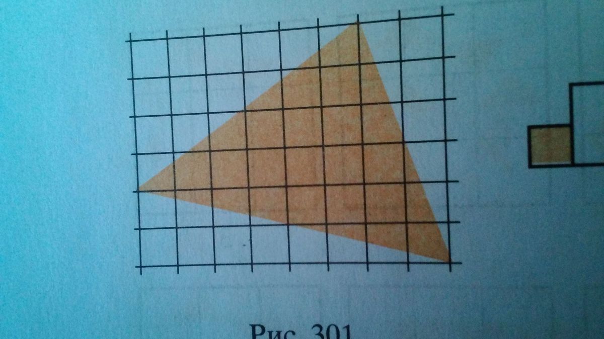 Этот треугольник вписан в прямоугольник 6х8, значит его площадь, равна площади прямоугольника минус площади трех оставшихся прямоугольных треугольников. Площадь каждого углового треугольника равна половине произведения катетов (т.к. каждый такой треугольник, это половина прямоугольника со сторонами равными его катетам). Итак искомая площадь равна 6*8-4*6/2-2*6/2-8*2/2=48-12-6-8=22.