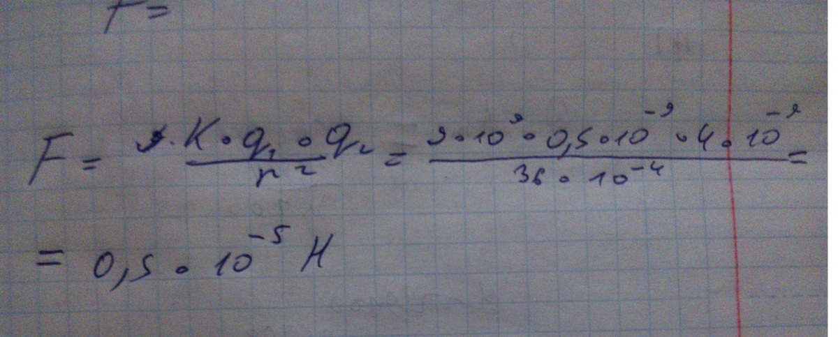два неподвижных точечных заряда 0,5нКл и 4нКл,находясь на расстоянии 6 см друг от друга,взаимодействуют с силой.