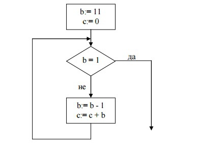 Определите значение переменной с после выполнения фрагмента алгоритма, записанного в виде блок-схемы: