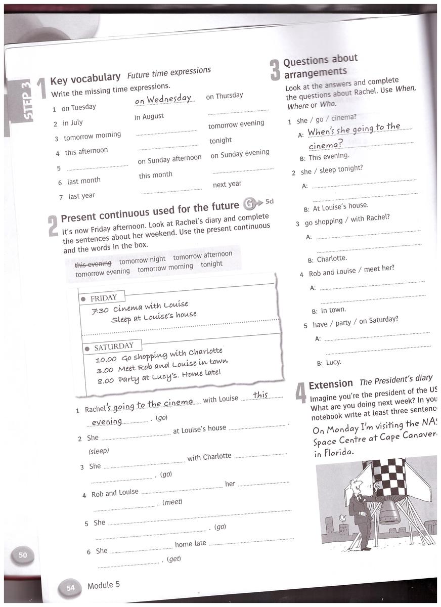 3. 2.Where`s she sleeping tonight? 3.Who`s going shopping with Rachel? 4. Where`re Rob and Louise meeting her? 5. Who`s having party on Saturday?