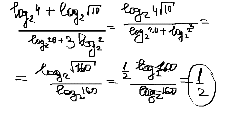 Вычислите log4 по основанию 2+Logкорень из 10 по основанию 2/log20 по основанию 2+3log2по основанию 2