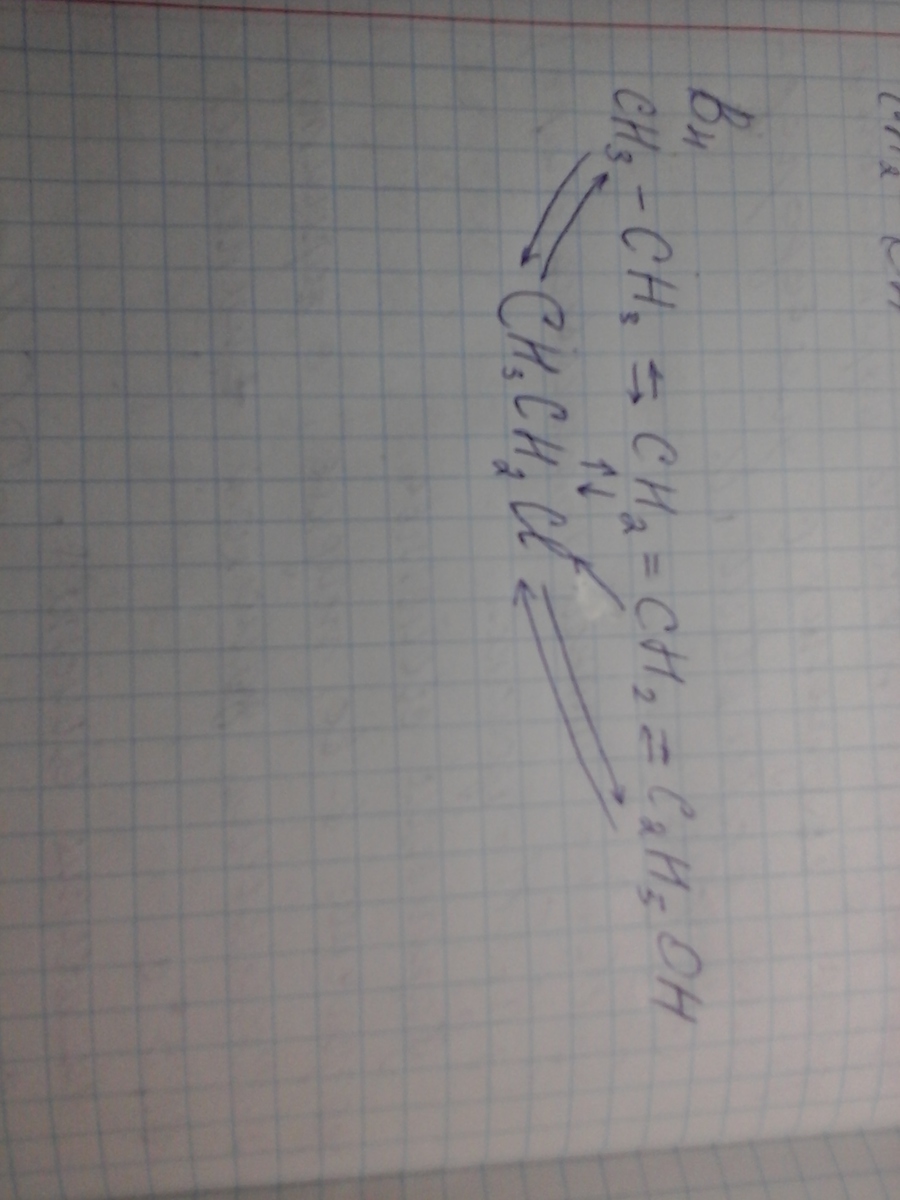 1) CH3-CH3->CH2=CH2+H2 (дегидрирование алканов происходит при повышении температуры и в присутствии катализатора: Pt, Ni, Al2O3, Cr2O3)