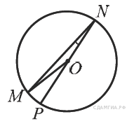 Найдите градусную меру ∠MON, если известно, NP — диаметр, а градусная мера ∠MNP равна 18°.