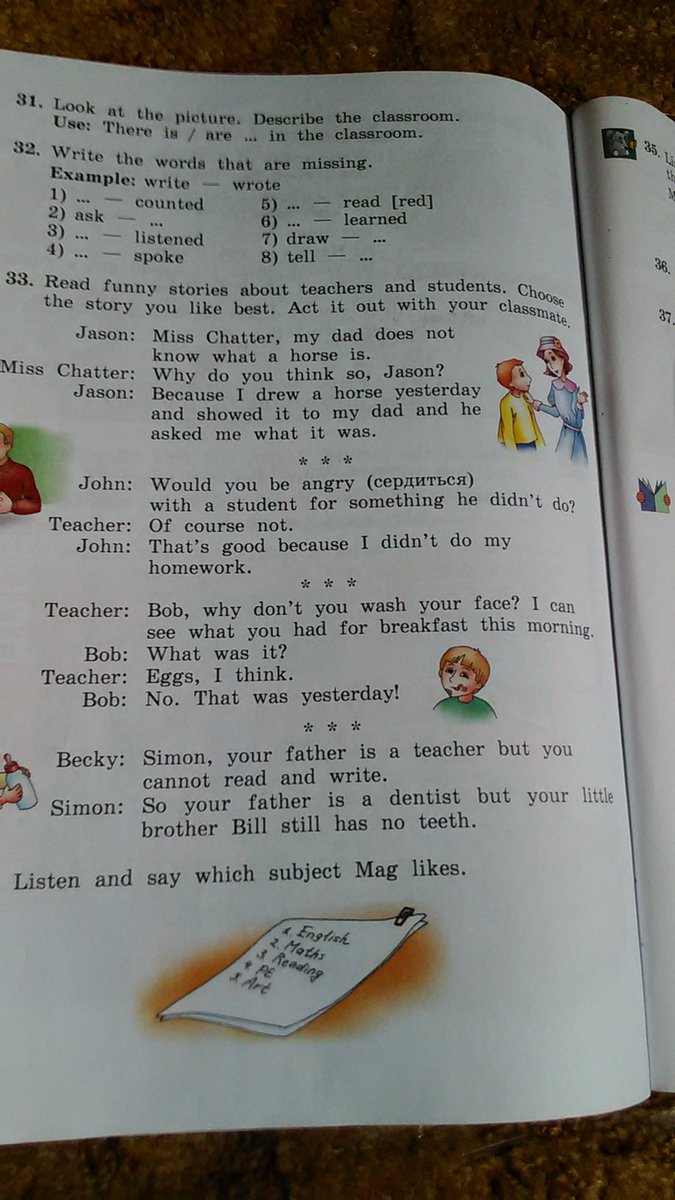 4.Саймон, твой папа учитель, но ты не умеешь читать и писать.