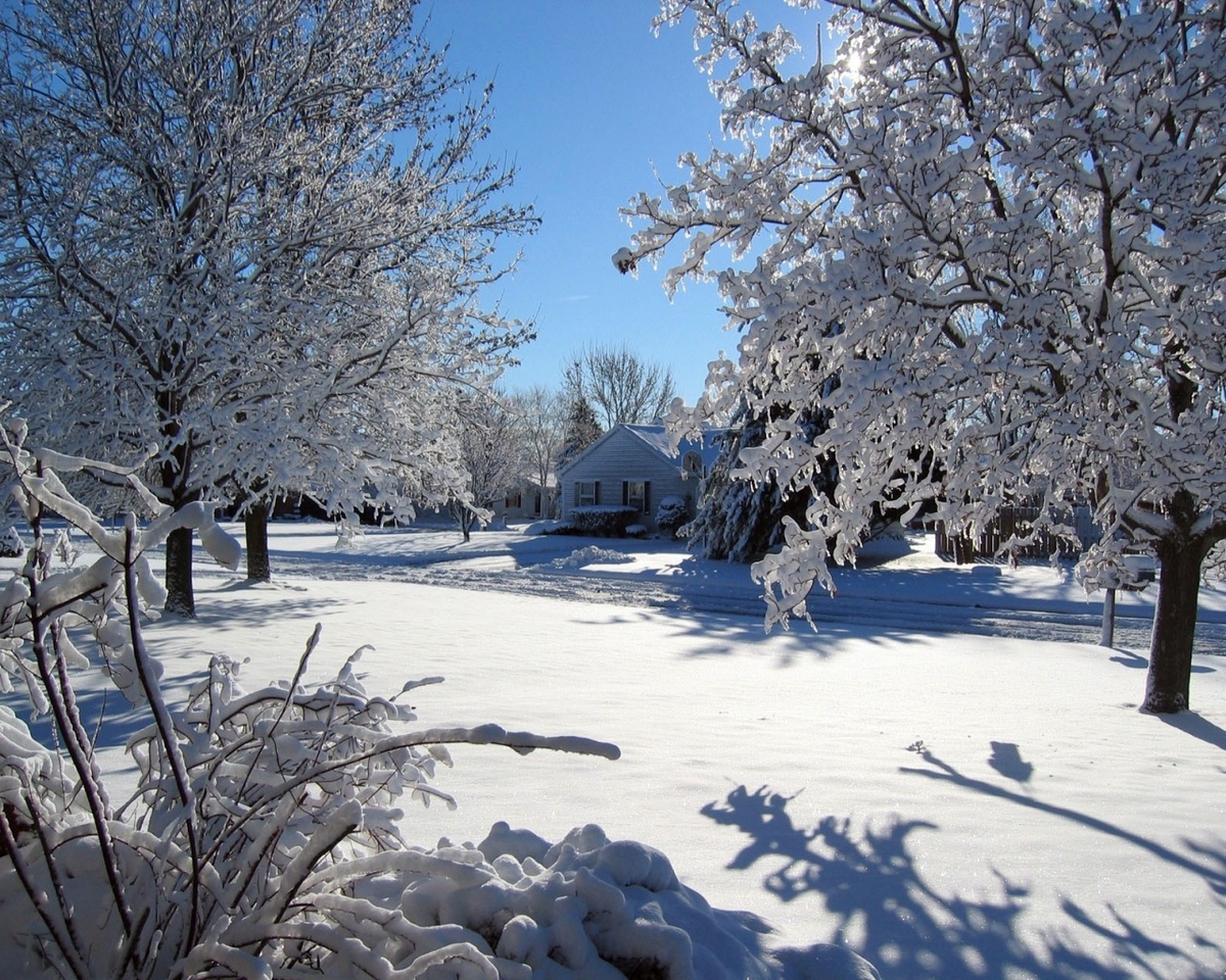 Вот и на этой картине весь мир как будто зачарованный. Всё остановилось во время фотографирования. Фотограф смог ухватить это зимнее, возможно предновогоднее настроение. Сквозь ветки, которые склонились под массой снега, просвечивает солнце. Небо голубое, без единого облачка. Тень от снежных деревьев падает на заснеженную землю. Самый первый план занимает низенький кустик, ветки которого хаотично направлены в разные стороны. Далее располагается пространство, полностью заполненное снегом, после же, есть деревья, стоящие в белом одеянии снега. После деревьев следует дорога, по которой проезжают машины и изредка нарушают атмосферу спокойствия в этом заснеженном уголке мира. Последний план этой фотографии занимают дома, можно предположить, что это деревенька. На крышах домов лежит несколько слоёв снега, они покрывают крышу полностью, и почему - то не падают на землю. Вся картины выполняется в белом цвете, так как автор хочет передать зимнюю пору. Глядя на эту картину, вспоминаются строки стихотворения А.С. Пушкина «Зимнее утро»: «Мороз и солнце; День чудесный!...»