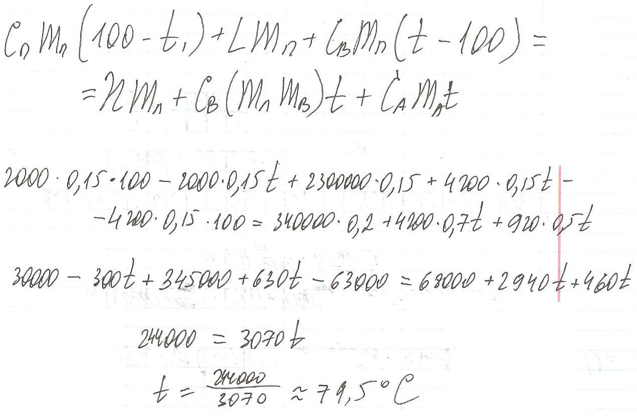 ответ еще зависит от табличных данных: теплоемкость воды, удельные теплота плоавления льда, парообразования воды и т. д.
