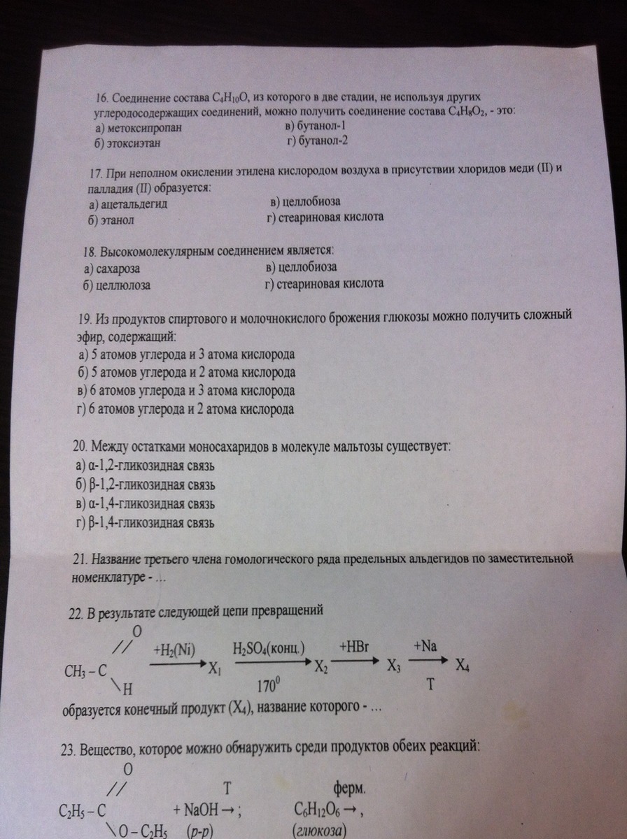 16В, 17А, 18Б, 19А, 20В, 21 этилметаналь, 22 Бутан, 23 этанол