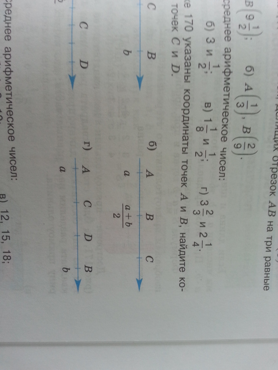 г) 3 2/3 и 2 1/4 (11/3 + 9/4)/2 =(44/12 + 27/12) /2 = 71/12 /2 = 71/24 = 2 23/24