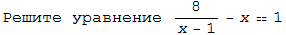 \frac{8}{x-1}-x=1|\cdot (x-1) \\ 8-x(x-1)=x-1 \\ 8-x^2+x=x-1 \\ x^2=9 \\ x=\pm 3