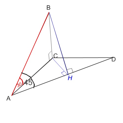 Отрезок AC - проекция наклонной AB на плоскость ACD. Угол DAB равен 45*. Найдите угол между лучами AD и AC если угол между наклонной AB и плоскостью DAC равен 30*