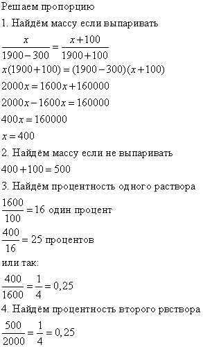 В сосуде находится 1900 грамм водного раствора соли. Если из р-ра выпарить 300 грамм воды, то концентрация раствора станет такой же, как если бы в этот раствор добавили 100 грамм соли. Какой же она станет?