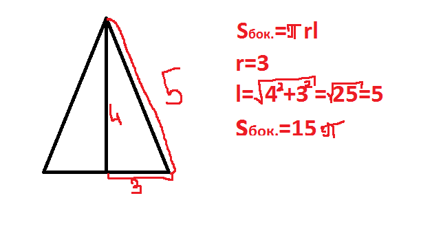 Найти площадь боковой поверхности тела, образованного вращением прямоугольного треугольника с катетами, равными 3 см. и 4 см. вокруг большего катета