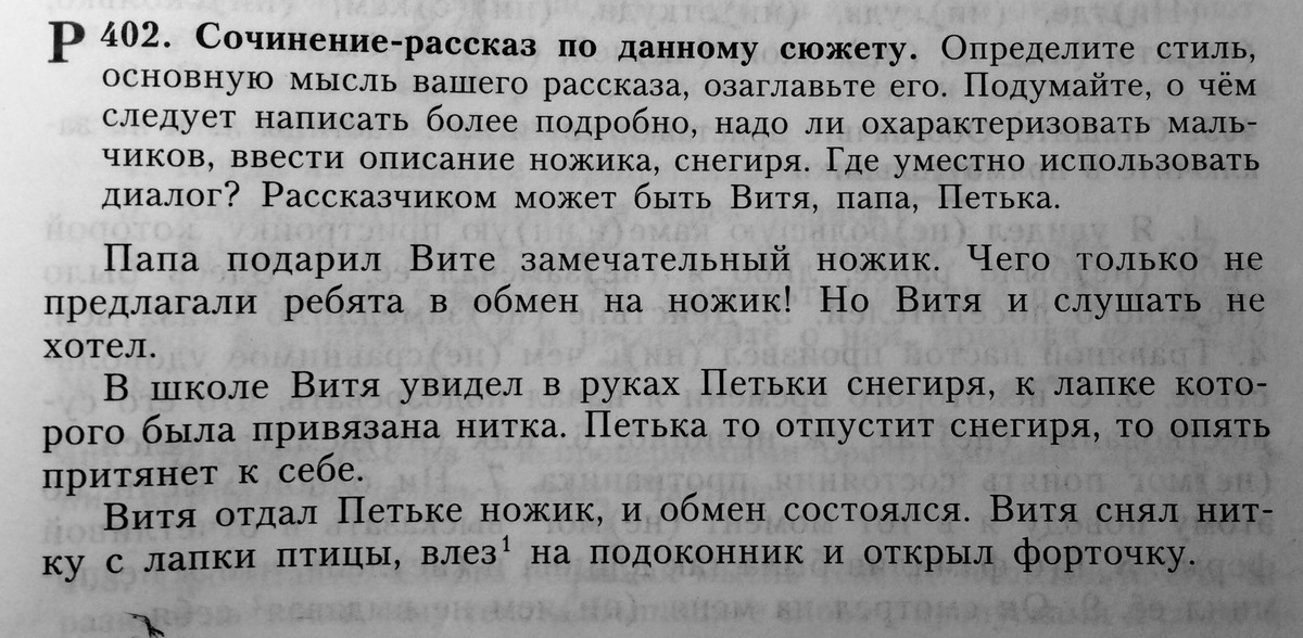 Однажды я купил своему сыну замечательный ножик, я долго думал надо подарком решил подарить именно этот. Я тщательно выбирал каждую деталь.. Моему сыну-Вите подарок очень понравился..и он побежал хвастаться в школу... Когда он пришел в школу все начали говорить что ножик красивый, все просили обменяться, но он говорил: