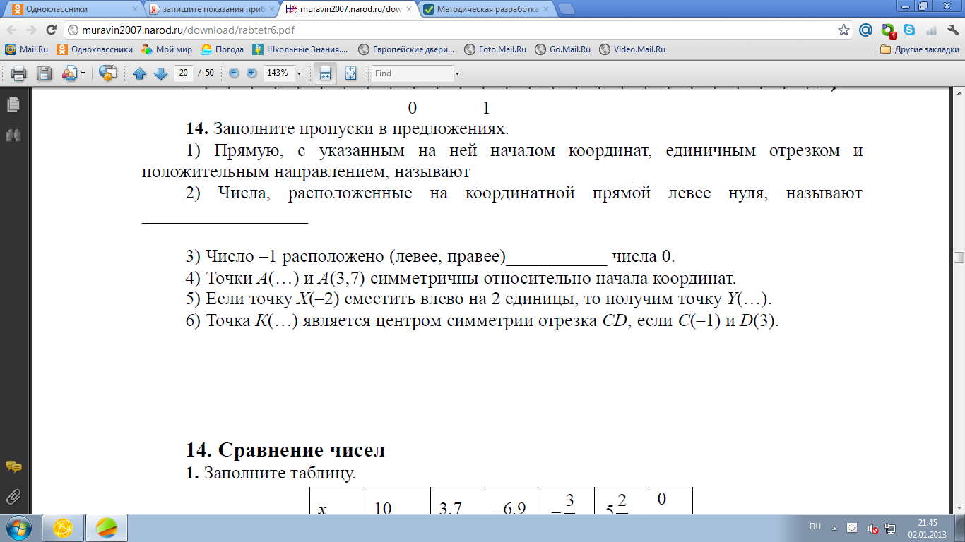1)координатная прямая