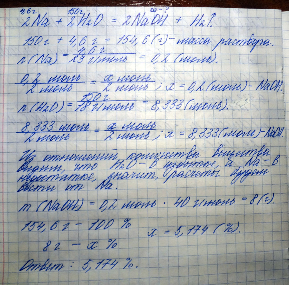 Определите массовую долю едкого натра в растворе образованного при взаимодецствии 4,6 натрия со 150г воды