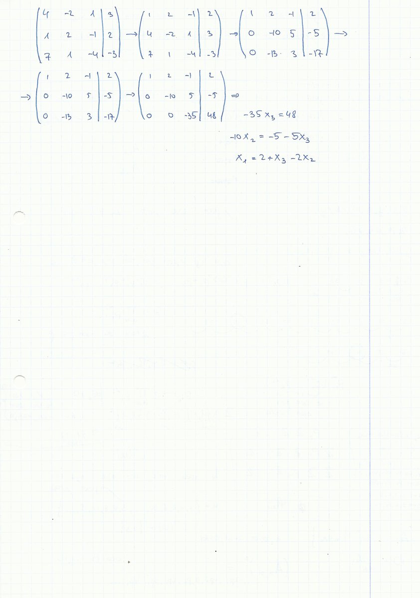 По сути - главное принцип понять, а арифметика - дело десятое )) Принцип в том, что если матрица А регулярна - значит для неё есть обратная, и всего одно решение уравнения Ax=B. Решение: x=(A^-1)B. Если матрица сингулярна - значит решений много